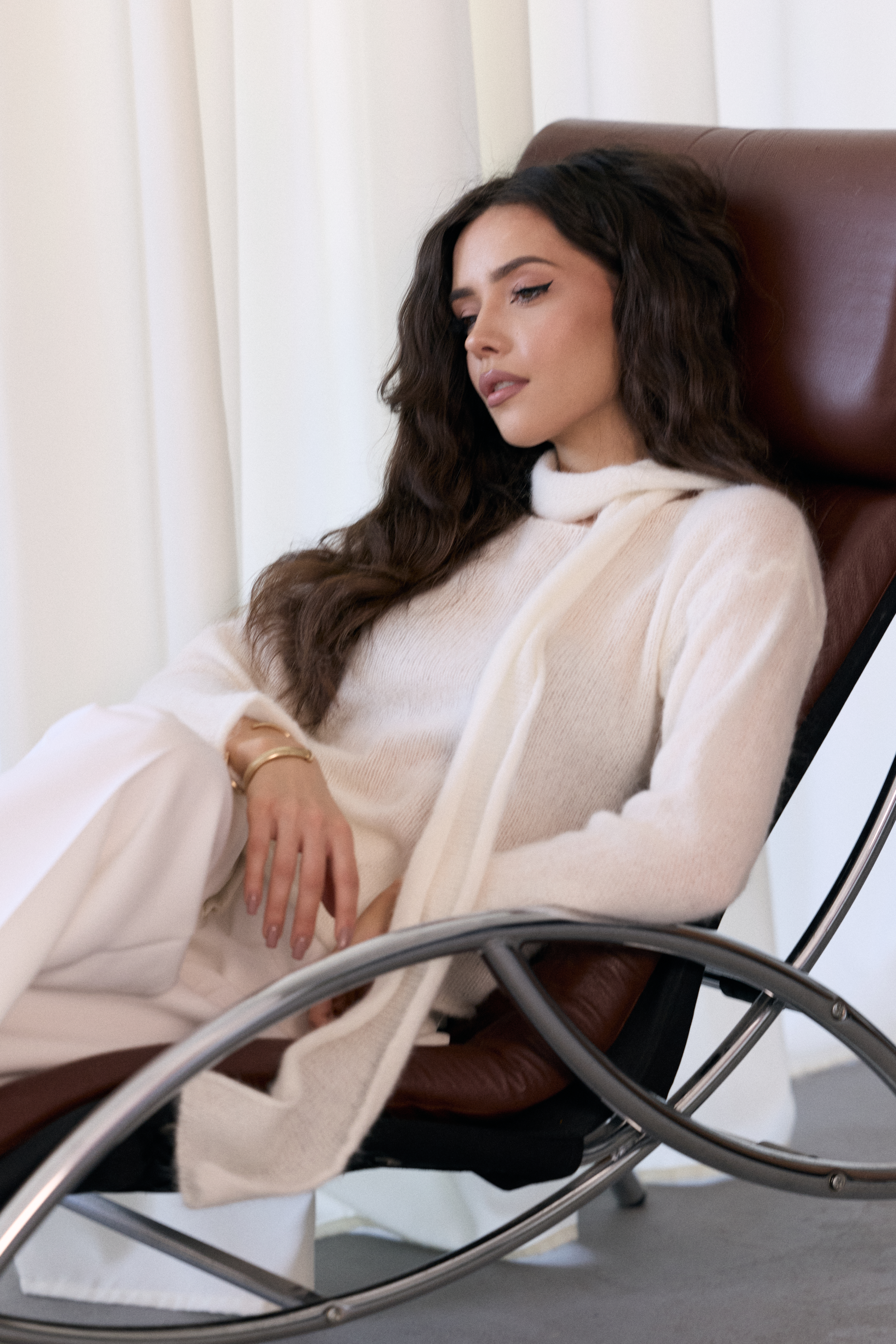 - Dół swetra wycięty asymetrycznie w skos