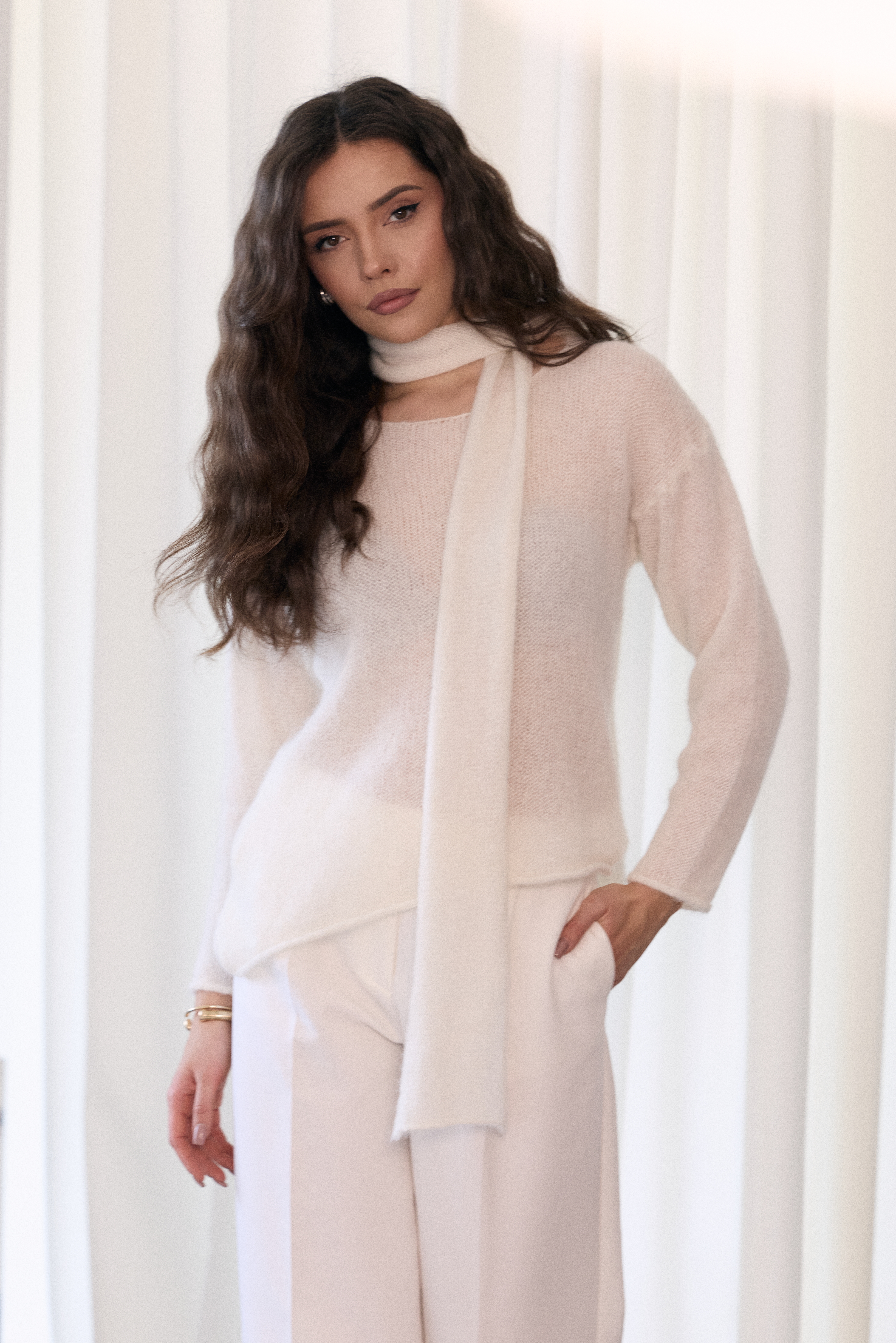 - Szal można wiązać i układać w dowolny sposób