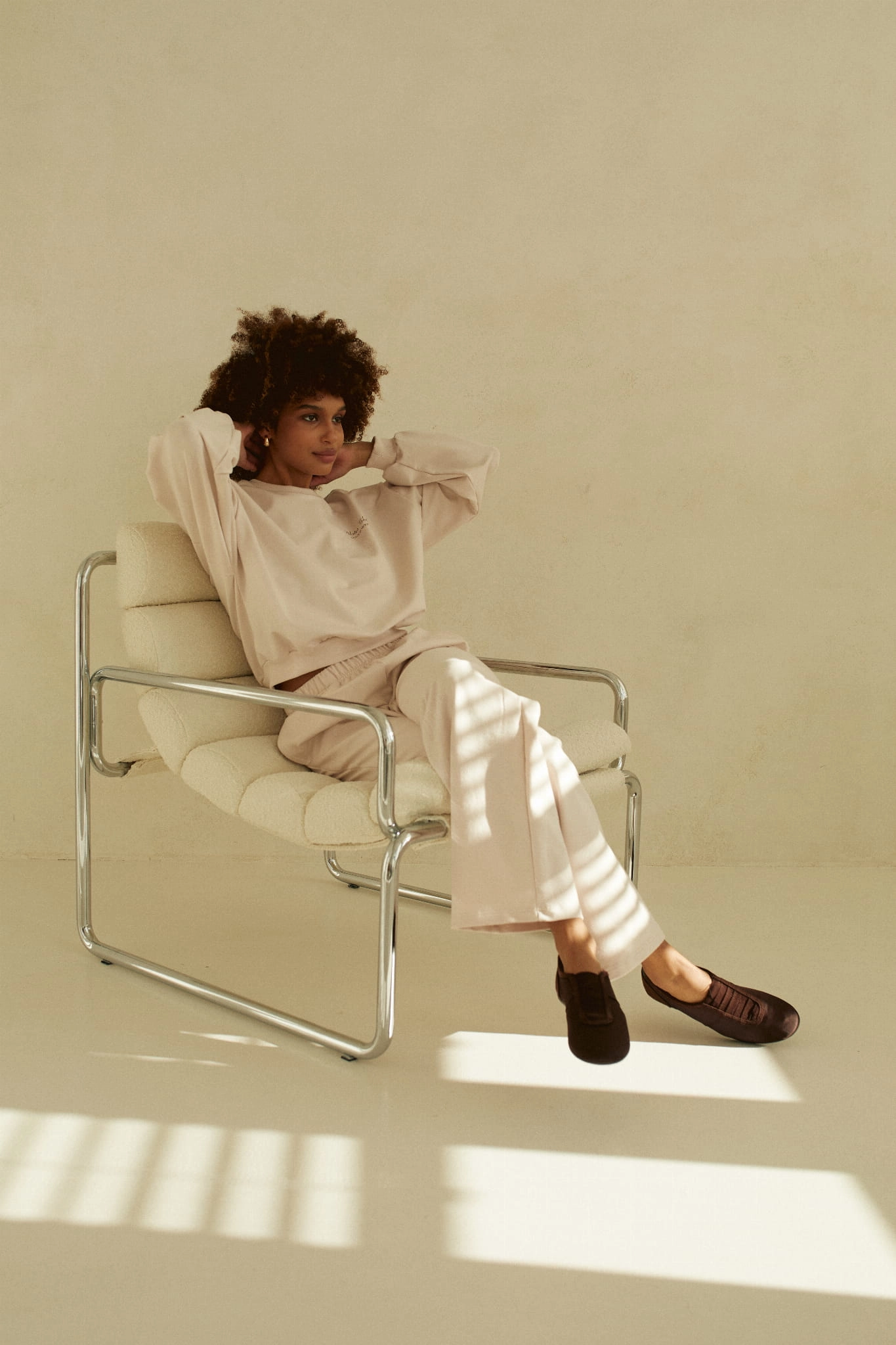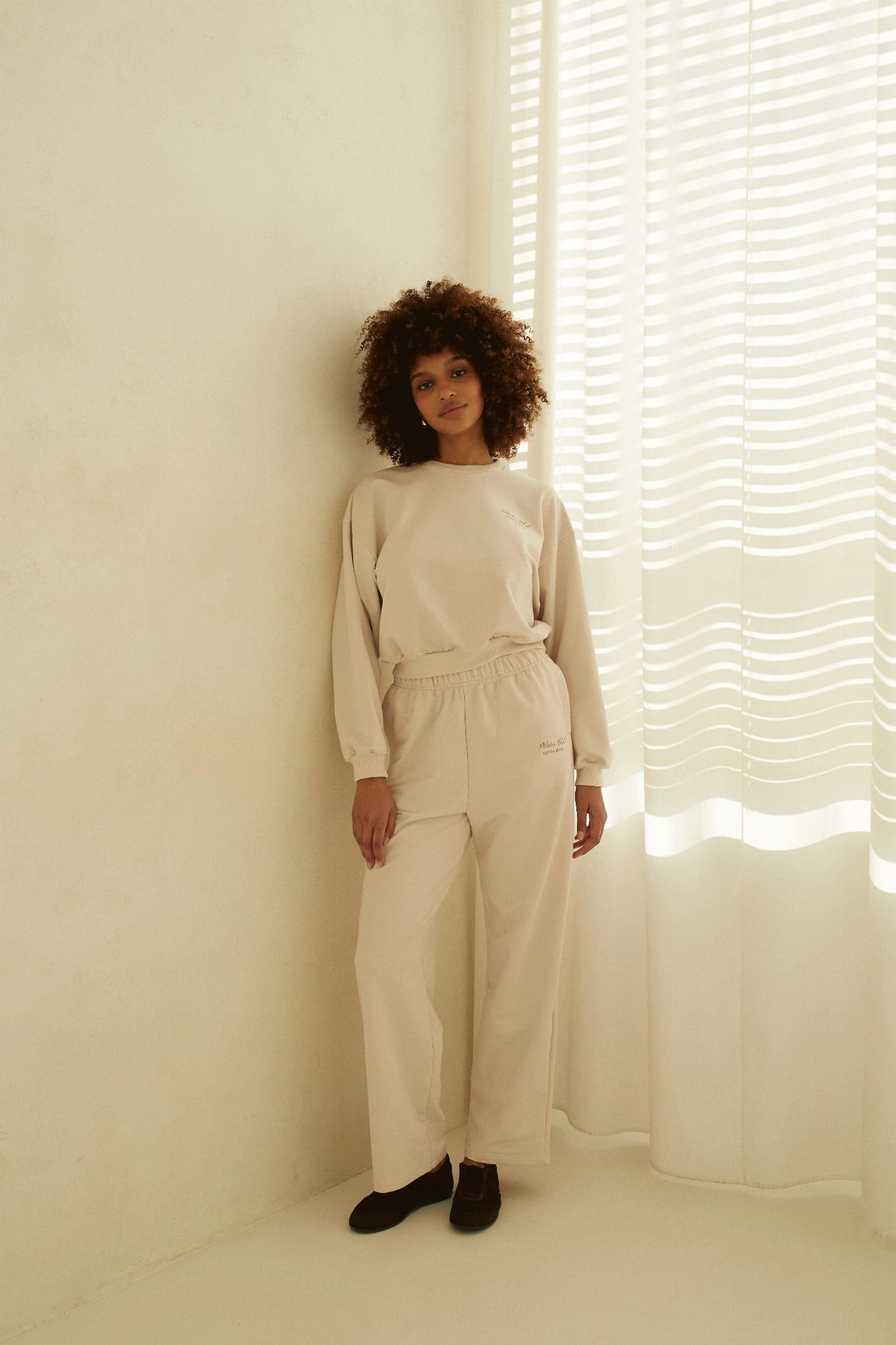 - Proste spodnie dresowe ze swobodnymi nogawkami